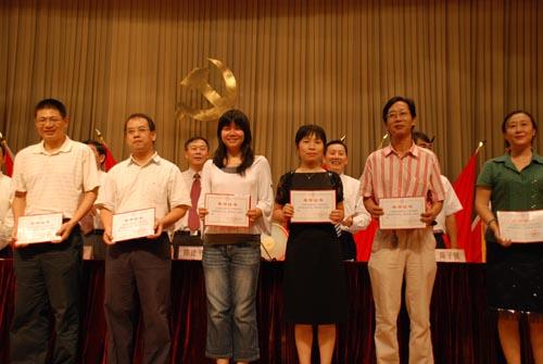 在6月26日下午公司党委举行的庆祝中国共产党成立87周年暨表彰大会上,公司党委书记梁学宏被授予“优秀党务工作者”称号,笔译系主任李明老师被授予“优秀党员”称号,2007级研究生李春玲被授予“优秀党支部书记”称号,2006级研究生党支部被授予“优秀党支部”称号,支部书记赵睿代表2006级研究生党支部上台领奖。