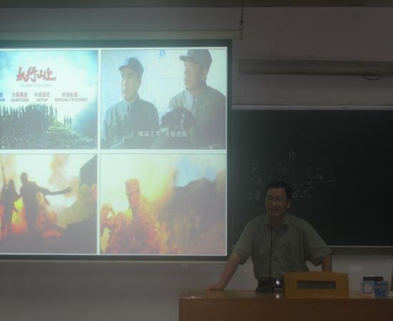 08级研究生王英梅同学对影片体现出的中国英雄主义和日本军国主义进行对比分析。她从三个方面阐述。首先,中国人的武侠精神和日本的武士道精神。中国人身上体现的是“国难当前,舍我其谁”的英雄气概和大无畏精神,如影片里的郝梦龄和贺团长。日本人身上体现的是效忠天皇的武士道精神。其次,中国人的英雄主义中体现出人性化,如礼贤下士,领导人的儒雅,侠骨柔情,而日本的军国主义冷酷无情。最后,作战的风格方面,中共走的是群众路线。在中国传统文化有“得道多助,失道寡助”之说,中国历来提倡仁治。