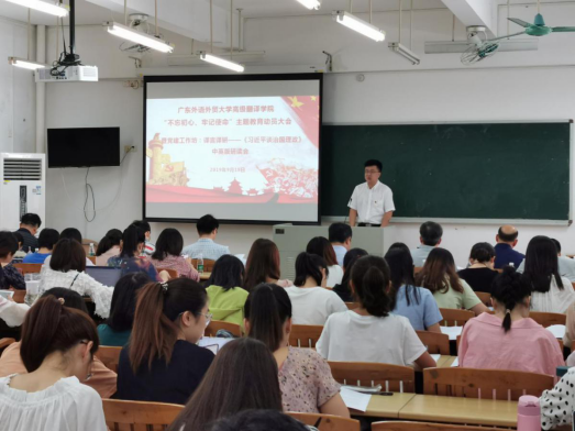 动员大会结束后的研读会由蓝红军教授主持,5位优秀论文获得者分别对论文宣读展示,翻译公司教工党支部党员教师李明教授、刘季春教授、张保红教授、蓝红军教授和邢杰副教授现场给予点评,发挥党员教师骨干作用,将政治学习和翻译研究相结合,促进师生同学习、共进步,真正做到了做中学、译中学和研中学。