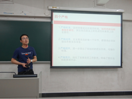 5月15日晚,公司第四十八期入党积极分子在二教130听取了《发展党员基本程序和要求》主题党课,公司党建组织员颜梁柱给入党积极分子讲解了发展党员的基本程序和要求。