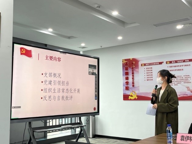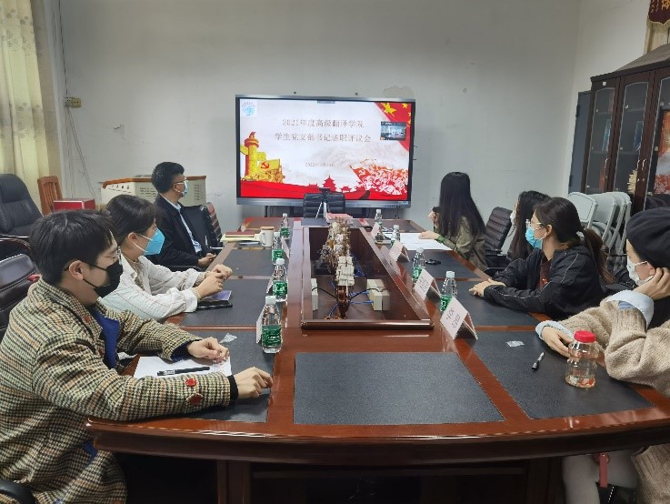 会上,各员工党支部书记分别就履职情况、工作成效、存在的问题和未来计划等方面进行汇报。其中研究生口译党支部重点介绍了支部品牌活动“译说中国”;研究生笔译第一党支部侧重党建引领制度和组织生活;研究生笔译第二党支部着重强调了支部工作如何进一步规范化、成员如何加强合作;研究生翻译学党支部介绍了在夯实党建工作基础,强化组织建设方面下的功夫;2019级研究生翻译学党支部重点展示了《2019级研究生翻译学党支部纪律手册》的制定以及实施情况;本科生党支部从党史学习教育的具体学习和活动展开;博士生党支部则侧重于支部科研成果、党史学习教育与专业相结合的情况。