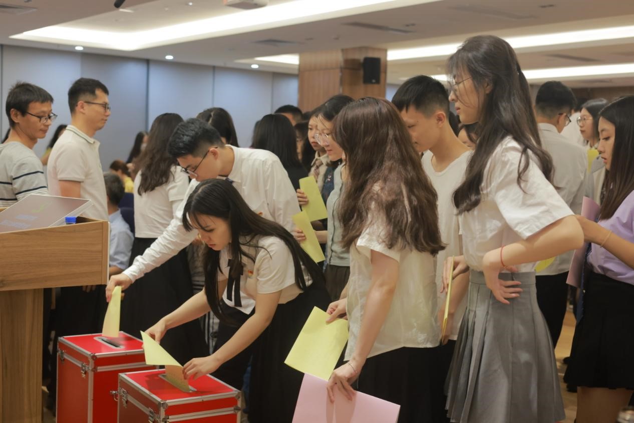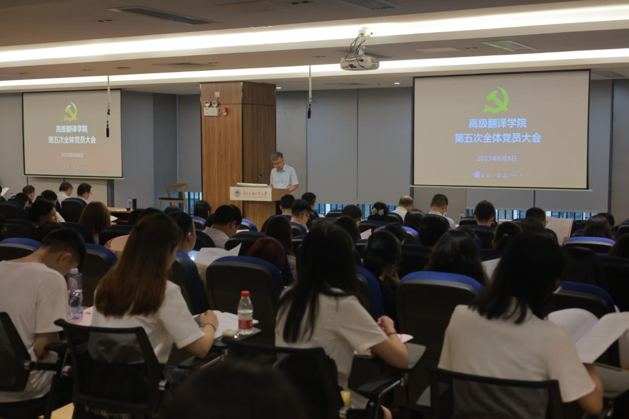 2023年6月8日下午,中共太阳城集团第五次全体党员大会在知识城校区进德楼506报告厅召开,全体师生党员参加会议。大会由党委副书记李政鸿主持,听取并审议第四届党委工作报告,选举产生新一届党委会。