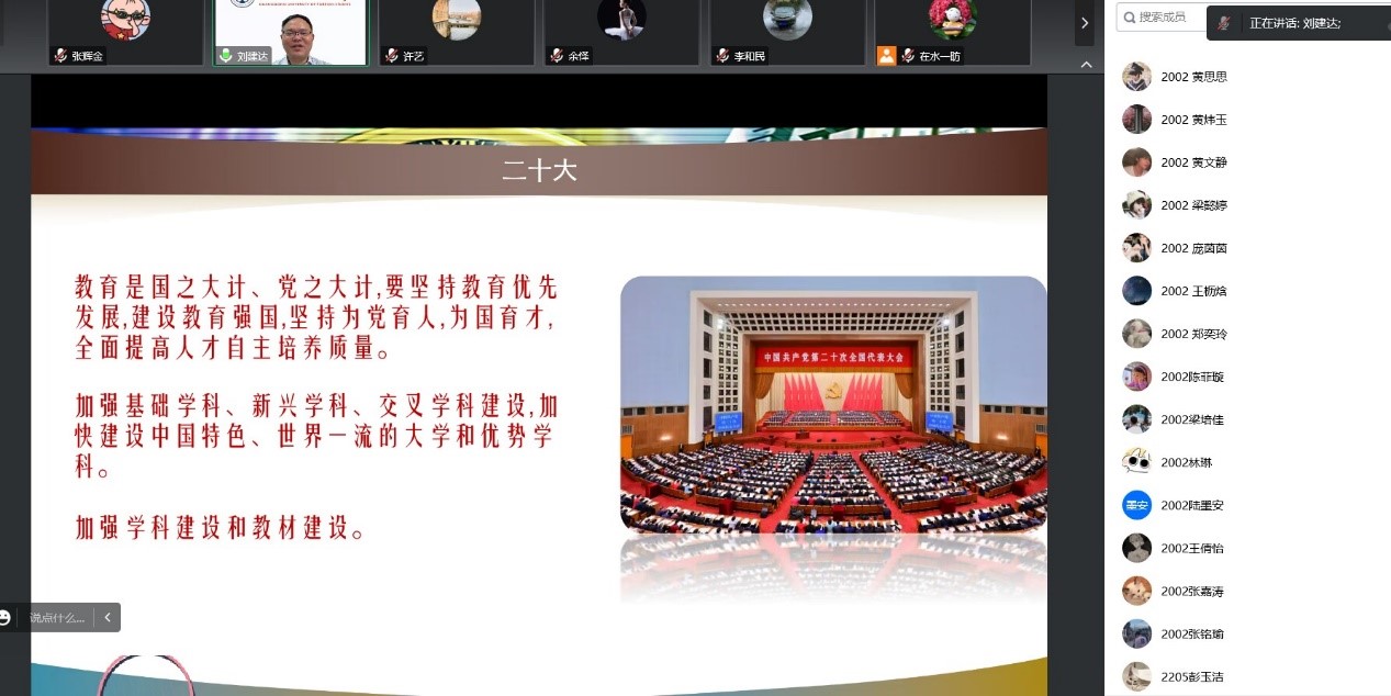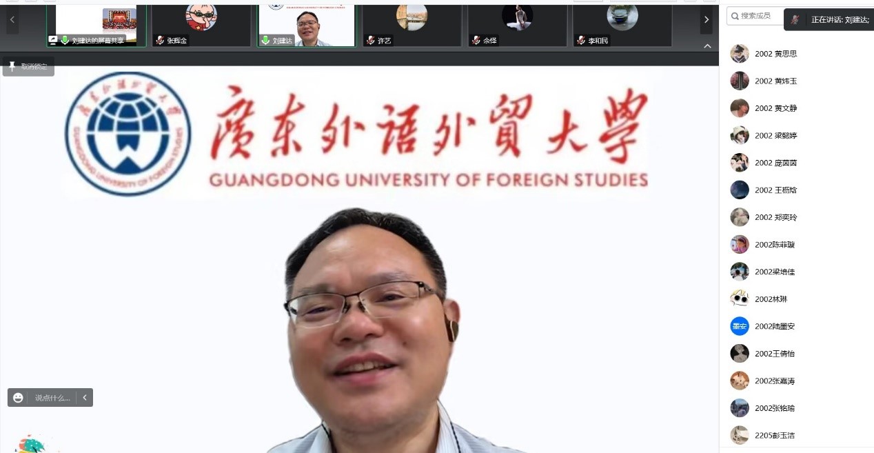 2022年11月17日下午,太阳城集团举行“双带头人”教师党支部书记工作室学术工作坊(二十四),邀请大学副董事长刘建达教授作专题讲座,主题是“新时代翻译专业的发展”。公司全体教职工、本科翻译2002班全体同学参加学习,公司党委书记李和民主持讲座。