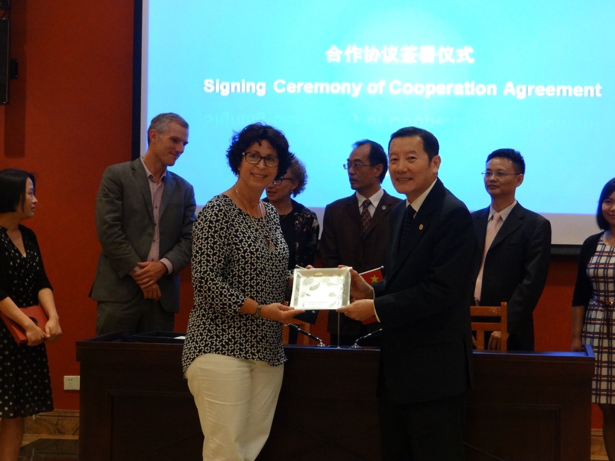 双方随后签署翻译硕士双学位合作备忘录,并互相交换礼物。