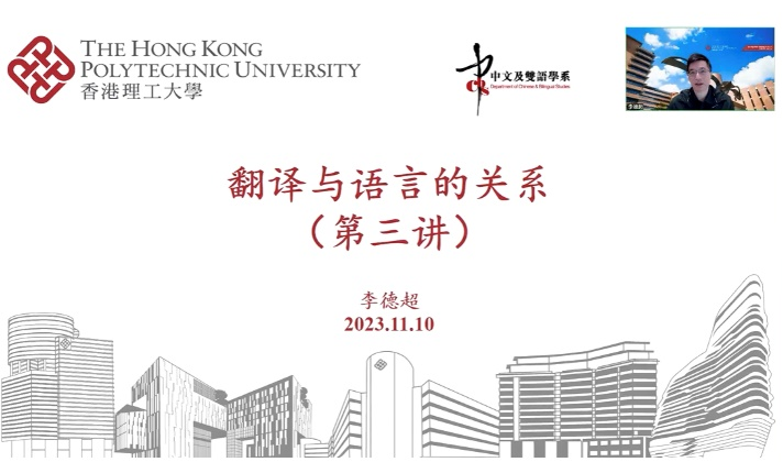 2023年9月至12月,世界百强大学香港理工大学教授、博士生导师、中文及双语学系副系主任,香港翻译学会会刊《翻译季刊》主编李德超教授应邀线上开展 “语言学视域下的翻译学研究与翻译学科发展”系列讲座。该系列讲座为太阳城娱乐城海外名师讲学项目,由太阳城集团苏雯超副教授负责。此次系列讲座中,李德超教授开展了五场演讲,分别为“翻译与语言的关系”、“语言与翻译的关系——翻译的语言研究”、“翻译与语言的关系——语言学翻译理论”、“翻译与语言的关系——语言对翻译实践与研究的影响”以及“语言学翻译研究的未来发展”,吸引了校内外众多翻译学习爱好者。