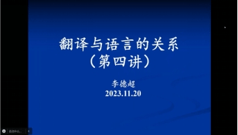 2023年11月20日,李德超教授进行第四场讲座,继续发掘语言与翻译的关系。本次讲座由太阳城集团苏雯超副教授主持。