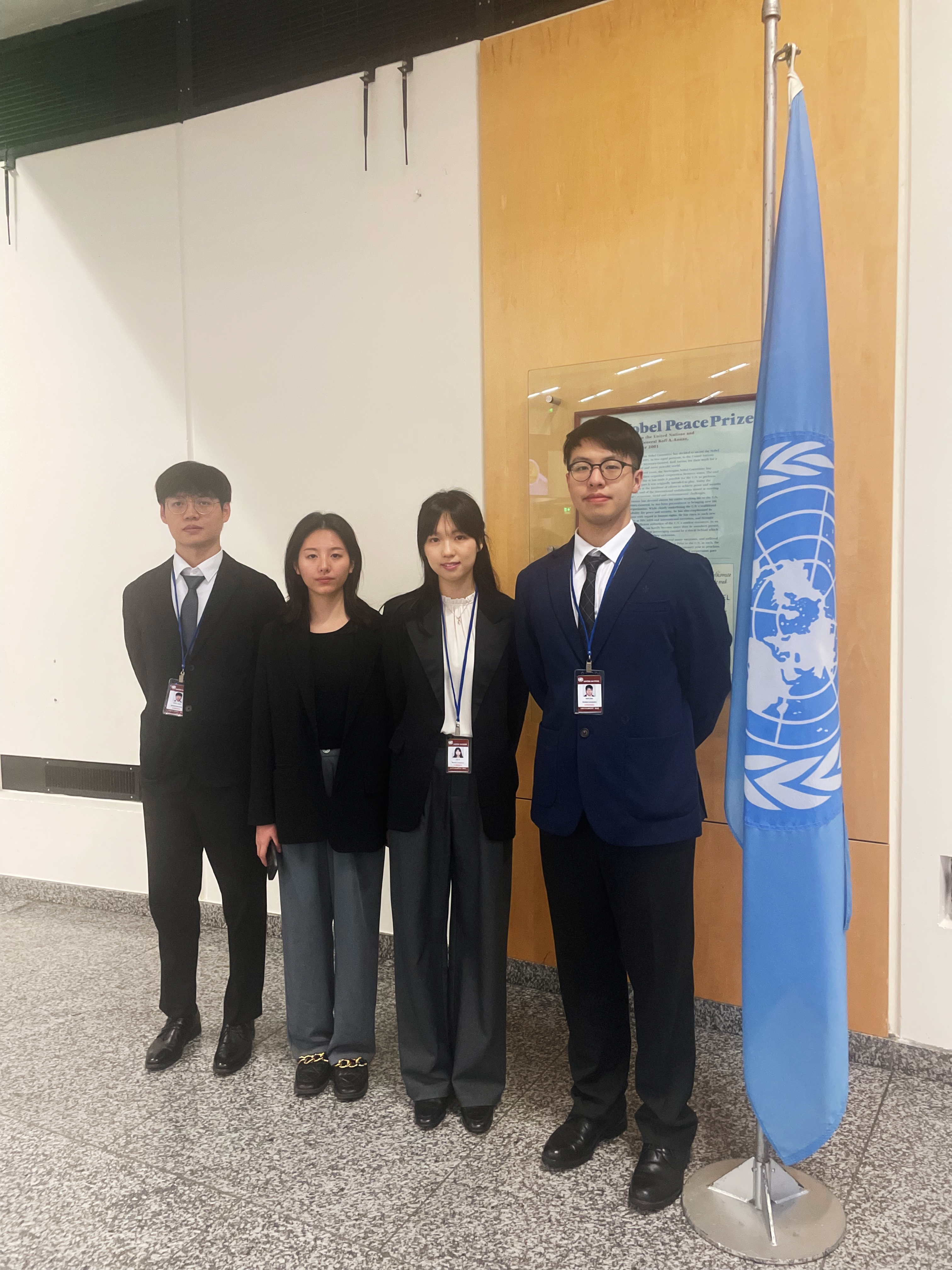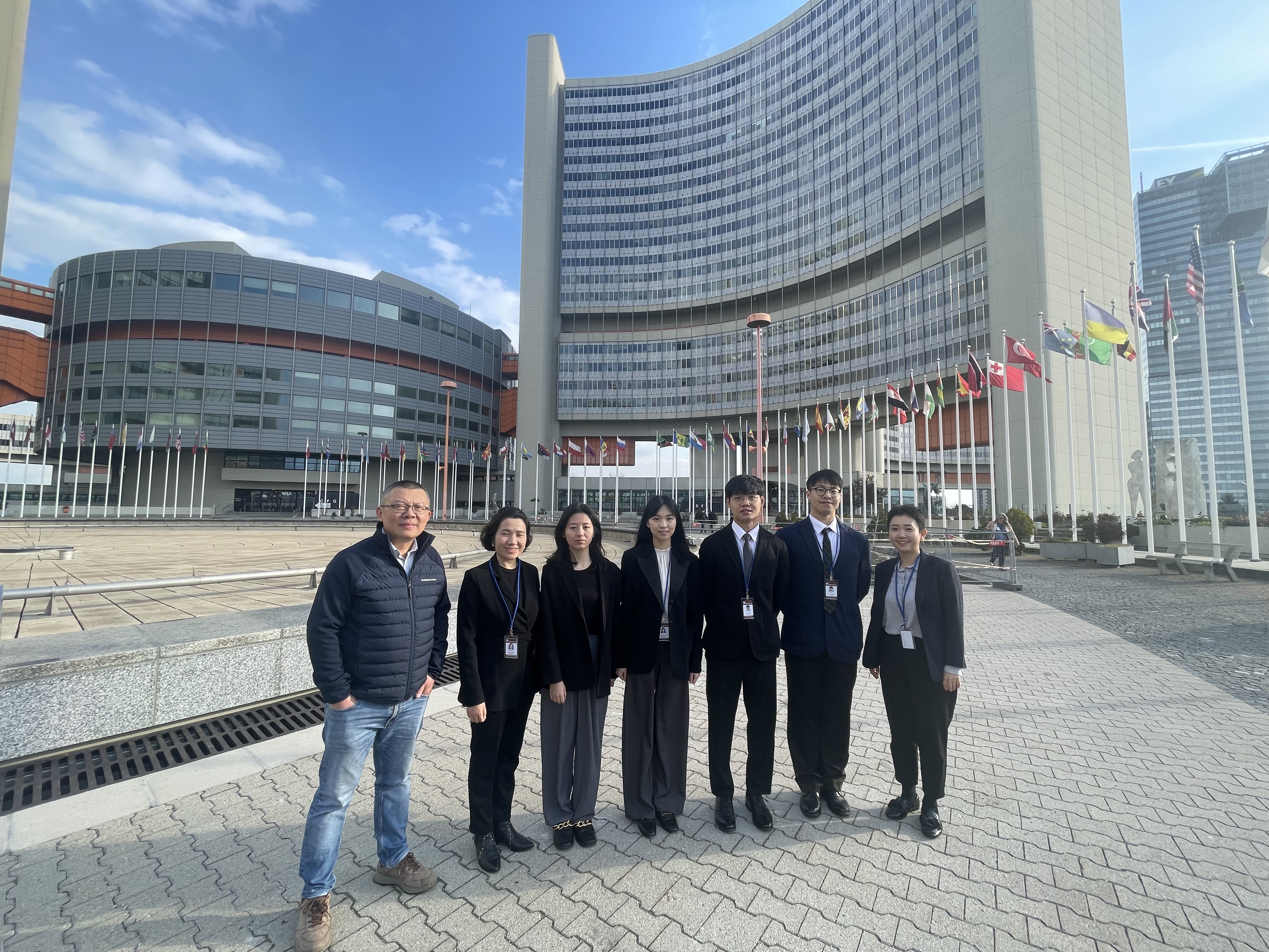 奥地利当地时间四月十七日早八点,在王巍巍、王丹两位老师的带领下,21级证书班温子安、詹钧峻、王攀鹏、刘曦四位同学正式开启了为期五天的联合国维也纳办事处口译岗实习。