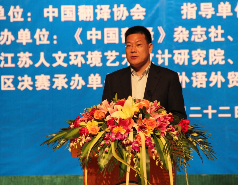 翻译公司党委副书记杜焕君为本次大赛进行开题,大赛于早上8点正式开始。董事长仲伟合首先为本次大赛致辞,他对所有参赛选手和嘉宾、评委的到来表示了热烈的欢迎。仲伟合说,很荣幸广外能再次举办这一盛大赛事,两年前的第一届中译杯全国口译大赛非常成功,看到了全国优秀选手的精彩表现,今年的比赛将会更加精彩。口笔译是广外非常重视的领域,这些年广外在培养译员方面取得了丰硕的成果,她不仅是国内第一家构建出译员培养体系的高校,也是CIUTI(国际大学翻译公司联合会)的成员之一。随着中国经济不断发展,社会逐步转型,以及全球化进程的不断推进,市场上需要众多合格的译员,因此这样的比赛非常重要。他同时提到,口译是一项十分复杂的活动,每一次口译活动都是一个绝佳的学习过程。致辞的最后,他预祝本次大赛圆满成功,希望选手们享受这次比赛,能从比赛中有所收获。