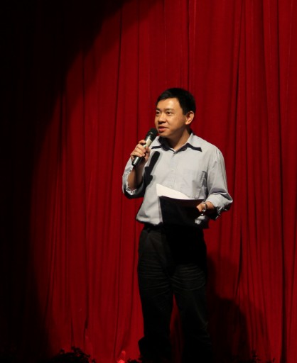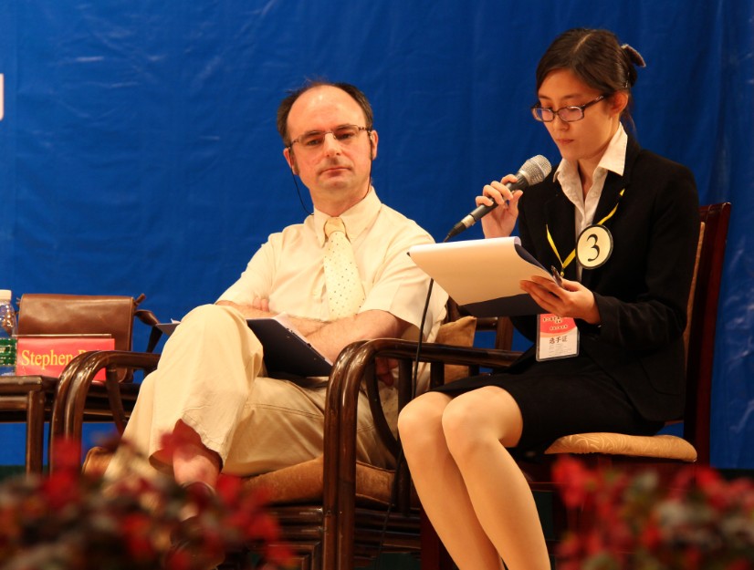 就口译的语言因素来看,口译的产出必须有意义,译员必须关注全局,理解发言者想表达的内容,而不是只关注发言者说了什么。他举了第一环节中出现的“things to work”,“collective destiny”,“open-ended commitments”等抽象的名词结构说明了理解的重要性。其次,詹成还说了发展是可持续的,但是债务“debt”却不能翻译成“可持续”的,发言者的真正意图是指“make it take place in a period so that you can deal with it in a better and more effective way”,因此准确理解发言者想要表达的真正意思是至关重要的。另外,口译中语法,尤其在中译英的过程中,是需要特别注意的地方,不仅要确定句子的主语,还要注意时态。詹成的点评对本次大赛内容的重点进行了详尽的分析,使参赛选手和现场观众受益匪浅。