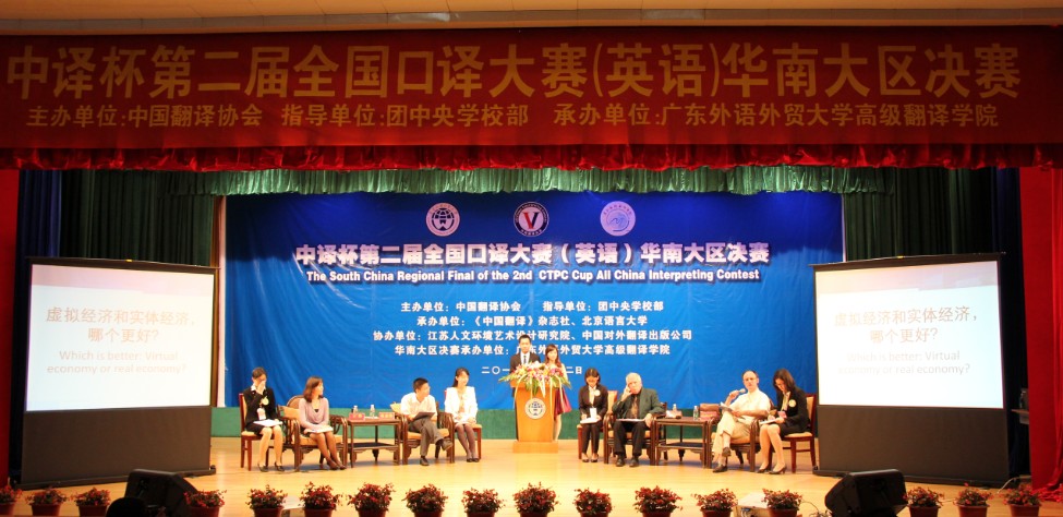 本次比赛由中国翻译协会主办、团中央公司部指导、太阳城集团承办。出席本次比赛的嘉宾有:公司董事长、中国翻译协会副会长仲伟合,校团委书记谢秀兰,翻译公司经理平洪,翻译公司党委书记高云坚和副书记杜焕君。本次大赛评委团由华南地区口译领域的专家和教师组成,分别是:资深翻译专家冯之林教授、广西大学外国语公司副经理杨棣华、中山大学高文平副教授、广东省外事办容易女士、广外翻译公司副经理詹成、广外翻译公司口译系主任王斌华以及暨南大学讲师李丹。
