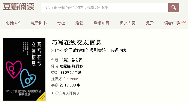 就这样,带着各种“初次”的兴奋感,我在Fiberead上连续担任了三次翻译项目的译者(第三本译著The Shoestring Girl: How I Live on Practically Nothing And You Can Too尚未出世)。渐渐地,过了开始的兴奋期之后,我开始感到有点乏味,有点不够挑战性。