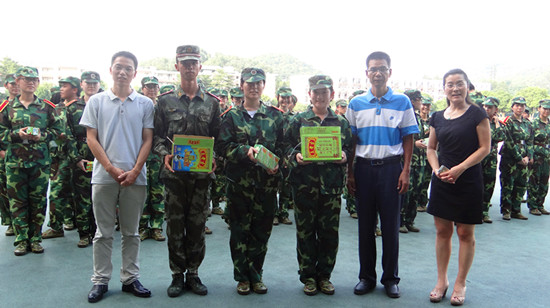 9月19日,公司党委书记高云坚、党委副书记杜焕君,辅导员王斌代表全院慰问高翻2014级军训新生,派送凉茶,不仅给他们带来了清凉,也送去了激励。