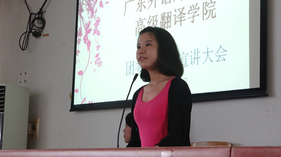 本网讯9月19日中午,2014年高翻团委员工会宣讲会在第四教学楼424顺利举行。本次宣讲会上,各部门代表纷纷进行了精彩的展示,前辈们的各种经验分享,使全体新生全神贯注于其中。过程中不乏幽默搞笑、亦或是温馨感人,使得大会上不断爆发出热烈的掌声。