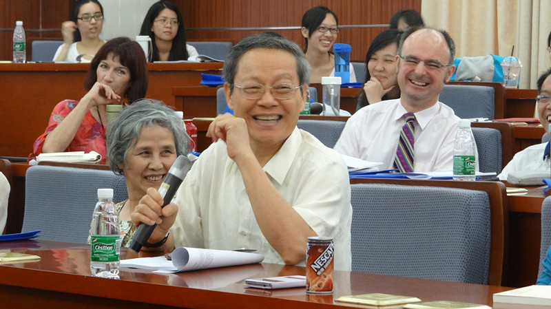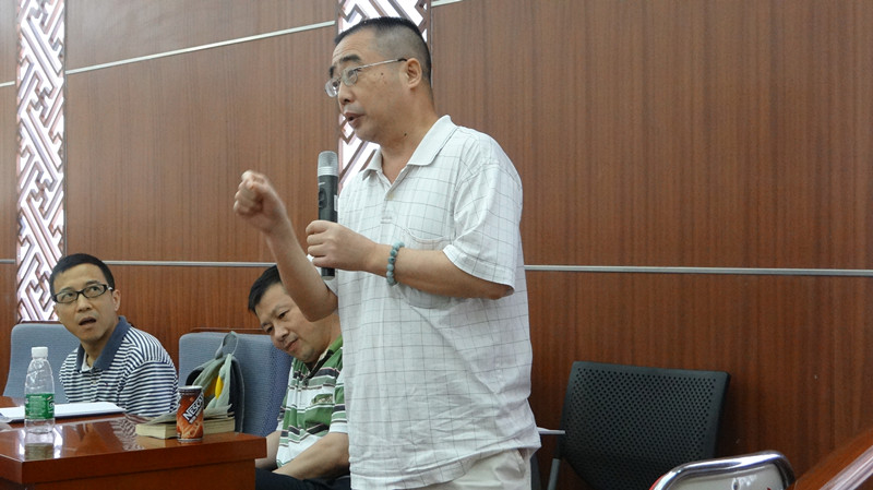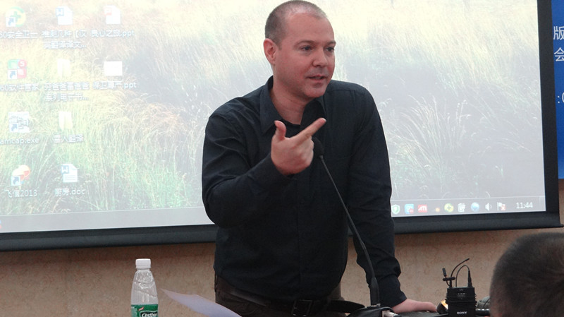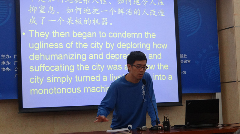 作为本次活动主要发起人之一的褚东伟首先朗诵精心挑选的译作片段,受到听众阵阵掌声,外籍作家、诗人FraserSutherland赞其行文流畅,也中肯地给出细微修改建议,褚东伟称,FraserSutherland作为单语背景的英语母语人士,对译作给出的意见相当真切而有价值,并强调译作采用单语背景审校的重要性。之后,李明副经理朗诵译作《推测几种》片段,由公司加拿大籍职工温仕豪作点评,师生互换点评角色、其乐融融交流探讨的景象,是公司译学精神最真实的写照。欧阳利锋与外籍评委Stephen Rake别出心裁,先评后诵,高度赞扬了《爱情研究》作者李银河的研究成果及开拓精神,以及她对中国社会学的贡献,而作为译者,是想通过该类文学的翻译,向世界展示中国正在觉醒的“性学”意识。这也正是中译外的宏观意义的体现。余东教授的《保卫老师》英译片段朗诵结束后,公司英教公司教师薛媛对文中一个动物身体部位的细节提出了疑问,该疑问引起了所有人的积极讨论,大家一致认为,翻译所需要关注的,不仅仅是词典里所注释的意思,还需要结合生活实际。这充分体现了丰富的经历及探究的精神对于译者的重要性。随后,英文公司教师许勉君朗诵译作片段,褚东伟评价称,许老师的参与对于本次活动意义非凡,这意味着,公司这样的活动并不仅限于院内,也欢迎全校有优秀作品的老师、同学共同参与,这也是将来“岭南译言堂”的发展方向。最后,作为本次译作中唯一一位英语母语的译者,牟传门朗诵译作《胡文青传》片段,其对中国历史和文化的深刻了解,在译作中充分体现出来,受到众人一致好评。