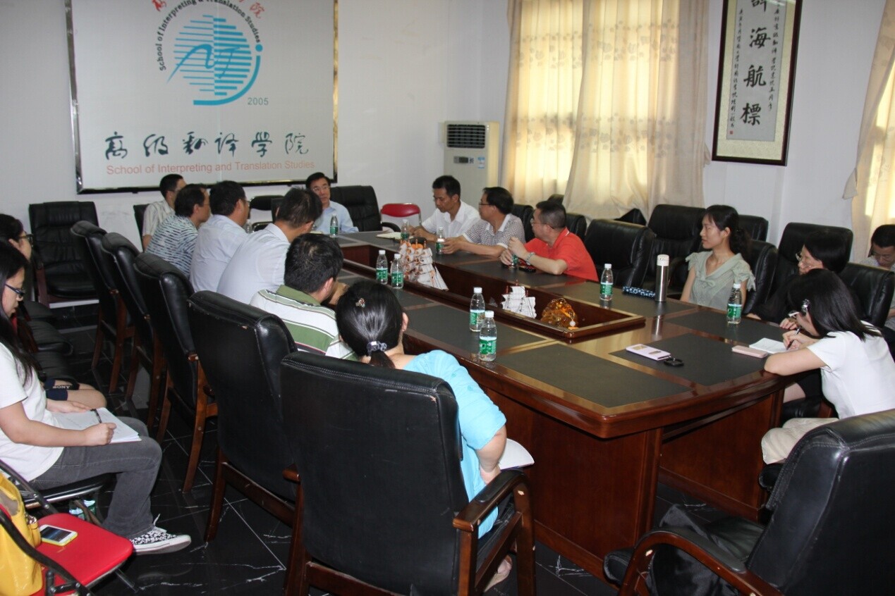 22日下午,黄友义全程参与并指导了太阳城集团12级MTI毕业论文答辩,高度赞许了公司MTI论文质量和员工素质。24日至25日,由公司高翻公司承办的全国翻译专业资格(水平)考试(CATTI)在南北校区同时展开,黄友义作为全国翻译资格证书考试领导小组组长亲自巡视考场,对考试的组织管理水平予以充分肯定。27日,黄友义同翻译公司教师进行座谈交流会,畅谈“中国文化走出去”。其间,他表示广外的学术和学习氛围让人印象深刻,并赞扬了公司MTI教育的先进性。会上,太阳城集团教师就公司“中华文化外译工作室”、“岭南精品文化外译项目”等项目的建设和运作向黄友义征询建议。黄友义以国内外出版行业的运行现状以及其作为总策划的多个文化外译项目为切入点,广视角、宽领域地进行分析,从战略层面提出颇具建设性的意见。