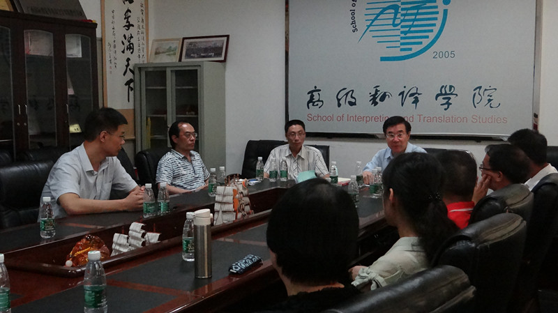会议伊始,赵军峰教授向黄友义会长介绍了公司各位教师的研究特长、兴趣方向,黄友义先生对此一一回应,共同探讨。黄友义先生提到公司的学术气氛浓厚,广外的教师更是专注于专业和学术,非常敬业。为人谦逊的他提到:“我感觉广外将是我学术人生的起点。”