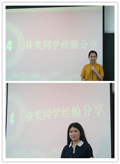 获奖选手代表朱晓珊(图上)、郑敏婷(图下)做笔译经验分享