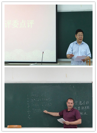 在接下来的评委点评中,不论是英译中还是中译英,老师们都着重强调了理解的重要性。理解是翻译的第一步,只有理解了,才能翻得准确、翻得出彩。褚东伟老师在英译汉点评中指出了员工译文中出现的忠实和通顺问题。他告诫道:“译文一定要有所依据,不要随意增减。”而面对译文感觉不通顺、不舒服时,往往是语句不合平时正常的说话习惯导致的,这时老师建议应该仔细推敲,反复思考或多观察他人的说话方式。在中译英点评环节,牟传门老师列出了做翻译的八大步骤:Read All(通读全文)、Special Issue(发现原文的特殊之处,例如长短句、句型等,并予以重视)、Main Idea(掌握原文大义,并时刻牢记于心,才能做到译文紧贴中心思想)、Translate(开始翻译原文)、Find someone who hasn’t read the original text(要找一个没看过原文的人来帮忙检查译文,这是检验译文是否通顺及中心思想表达是否清晰地最好办法)、Self-check(自己检查一遍,通览译文)、Grammar(修改语法错误,尤其是动词时态问题)、Logic and Main Idea(最后的检查,逻辑与中心思想)。最后,赵军峰老师补充提出了一个典型的翻译“硬伤”——中英夹杂(尤其是在英译汉中)。作为翻译的一大戒,他告诫同学们在在遇到像Twitter、Facebook、人名等外来词时一定要译出来。