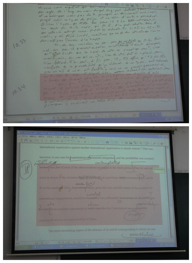 黄先生的日常工作是为国际法委员会服务,他以此为例解释了一份联合国文件从记录、翻译、审校、润色、排版、发行的过程。