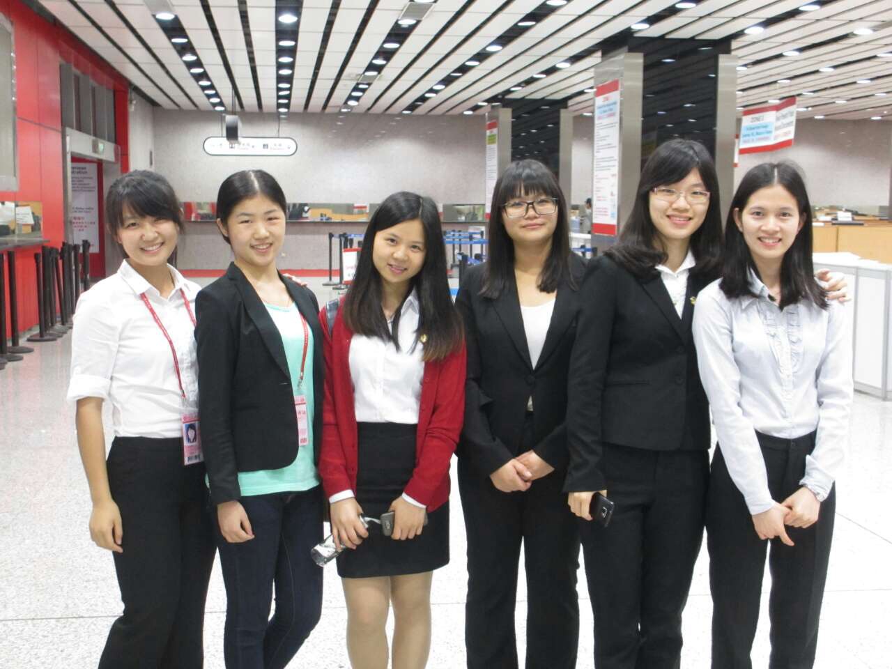 在办公室工作比较少的时间里,办公室工作人员还会被分配至其它工作岗位,例如咨询投诉、验证组等,以缓解这些岗位的工作压力。这就要求办公室工作人员要对其它工作有一定的了解,同时要具备良好的双语沟通能力,比如咨询投诉的柜台前,每一天都有客商络绎不绝地前来,如何用简单易懂的语言解答客商的疑问,如何指引客商在偌大的场馆中按时赶到他想去的地方,如何应对部分客商的大吵大闹,都是办公室工作人员要面对的问题。