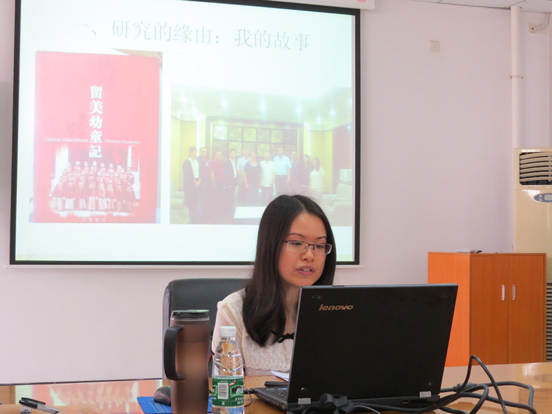 叶霭云的演讲分为五个部分。第一部分是研究的缘由。主要是二个方面的影响:第一是看了专著《大清留美幼童记》之后对这批幼童的命运甚为关注,并发现他们回国后的职业生活很多与翻译密切相关,而翻译史中对这个群体的描述比较模糊,他们对翻译的贡献没有得到公正对待;第二是本研究与叶霭云自己的博士论文研究有较多的联系。叶霭云博士论文做广州十三行的翻译史研究,而120名留美幼童中有82名广东人,他们在洋务运动中的翻译活动与她的翻译史研究有着一定的联系,对博士论文研究有启发。第二部分是留美始末,具体介绍了这些留美幼童在美国的生活和学习情况;他们本来要在美国待15年,但由于他们的生活严重受美国生活方式的影响,清政府心有不安,于是分批把他们中途召回。第三部分是幼童的译事活动及评价。幼童回国后一开始清政府并没有想到如何用上他们为国服务,因为语言上的优势,他们很多被派上翻译岗位,以翻译工作作为一种过渡,由于当时译者地位和报酬的低下,他们所受到的待遇是很不公正的;尽管如此,他们还是在洋务实业翻译、外交翻译以及传播先进思想的翻译中发挥了比较重要的作用。第四部分是译者身份被遗忘的原因,主要是因为当时幼童留学的经历非常痛苦,他们自己本身不想谈及此事,再加上事务性译者的地位卑微,没有引起多少人对这个群体的注意。第五个部分是研究启示:事务性译者地位在翻译史研究当中不应该被贬低;翻译史研究要有跨学科的视野;研究留美幼童的翻译活动对我们现在的翻译教学、语言服务业用人、招聘等都有启发意义。