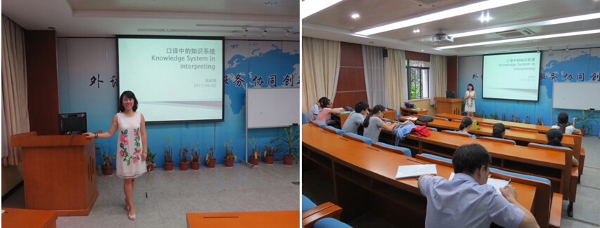 本网讯 6月3日下午,本学期第三次翻译学博士生论坛在六教B108如期进行。论坛由2014级博士生赵毅慧主讲 “口译中的知识系统”。担任论坛主持人的是2014级翻译学博士生刘建珠。高翻公司的部分博士生、访问学者和硕士生参与了本次论坛的讨论。