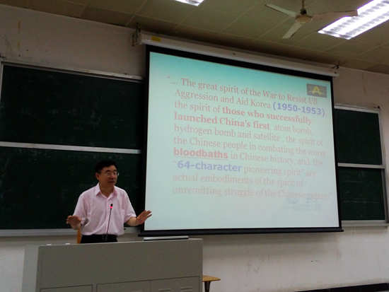 黄友义以就业背景为切入点,提出本次讲座的主题,指出全球化视野对我们这些外语工作者的必要性。他还以当前中国时事为例,指出了当前许多国外主流媒体对中国人的偏见,并总结出当今中译英与以往的不同在于人多面广,告诫译者在做翻译的时候要考虑到普通民众的理解能力。
