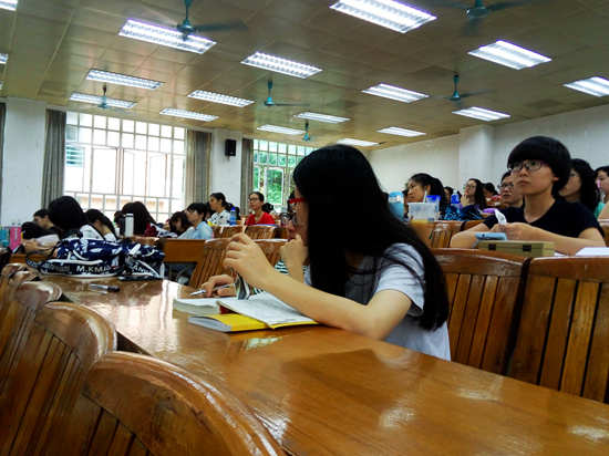 他还向同学们介绍了对外宣传中的一些误区,并推荐了一些经典著作。他指出当前外宣品的三个特征,并据此总结了翻译的五个要点,一是避免宣传味,二是使用通俗易懂的语言,三是避免过多使用专业术语和行话,四是注意美文的翻译,五是背景介绍宜简不宜繁。他以此为中心,逐条展开,一一讲解,并结合自己多年来的经验及见闻,展示了大量的实例,详细地论证了他对翻译的深刻见解,分享了他从当今翻译工作中发现的一些不足和故事。同学们都听得十分专注,时而被他幽默诙谐的语言逗笑,时而认真地记着笔记。黄友义精彩的讲解引得全场热烈掌声。讲座在欢快的气氛中圆满结束。