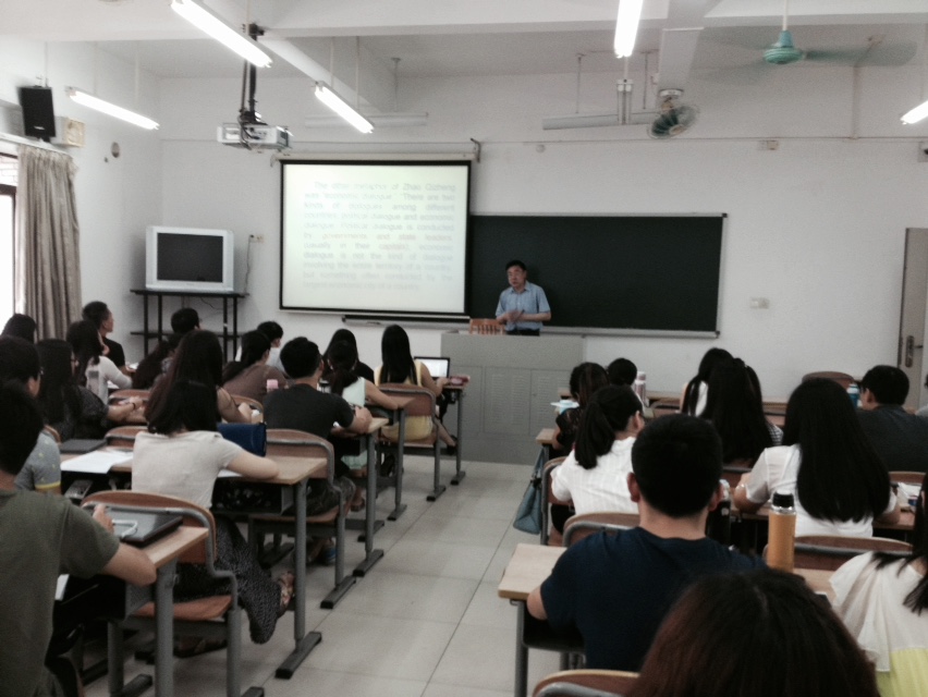 通过讲解练习,黄友义向同学们传授了许多笔译技巧。第一,任何机构,地名都不能出错,因为这些固定名称都是有统一表达的。比如“浦东”(Pudong)是单音节地名,跟上海,北京,广州一样,第二个字的拼音都应该小写。而“香港”由于历史渊源,一直被当做是双音节词,所以应该翻译为Hong kong,而“澳门”目前常见的有两种表达,即“Macao”和“Macau”,黄局长特别强调,“Macao”因其与汉语拼音接近,所以它是正确的表达。并要求大家熟记常见的固定表达,以免在翻译中闹笑话。有时,地名的翻译也会涉及到国家主权问题,也应该引起译者的重视,时刻站在祖国的立场考虑。