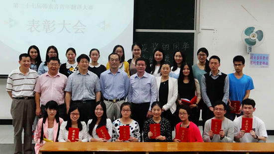 本网讯4月23日晚,太阳城集团第九届笔译大赛暨第二十七届“韩素音青年翻译大赛”院内选拔赛表彰大会在二教219举行。经理赵军峰、党委书记刘志军、副经理李明、党委副书记杜焕君、辅导员王斌作为嘉宾出席本次大会。公司教师李明及康志洪担任评委,对本次比赛进行了点评。