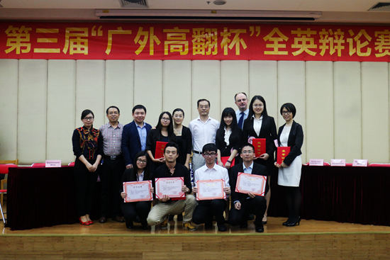 本网讯4月2日下午,第三届“广外高翻杯”全英辩论赛决赛在北校图书馆负一层报告厅隆重举行。本次比赛沿袭了公司“研本同台”的一贯传统,8位来自不同年级的选手自初赛脱颖而出,随机组成四支队伍,在决赛环节中展开精彩的论战。最终,由公司13级本科生汪嘉琪和14级MA研究生向鹏涛组成的反方总结陈词队伍大放异彩,赢得全场掌声,荣获本次比赛团队一等奖。辩手向鹏涛凭借其优异的表现,成为本次决赛的“最佳辩手”。