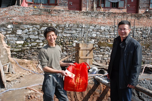 值农历羊年到来之际,赵军峰经理一行人为扶贫户和慰问户送上慰问金,预祝他们新年快乐、合家安康,鼓励他们继续以奋发向上的精神发展好项目。扶贫户和慰问户纷纷对公司给予的关心和慰问表示衷心的感谢,并表示新的一年将再接再厉,早日摘掉贫困的帽子。