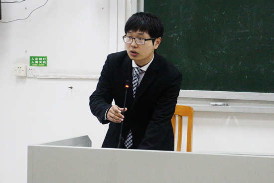 大会开始前,全体观众观看了四支队伍的宣传视频,对其本学期取得的成绩有了基本的了解。随后,新任经理赵军峰发表了讲话。首先,他表示很高兴能参加今天的总结大会。在他看来,积极参与员工活动不仅能让同学们更加了解自己,也能让自己更加了解院内各项事务的运作情况;其次,他结合了公司的基本情况,阐述了四支队伍对公司发展的重要性。公司一向秉承“育人为本”的理念,从05年建院以来就重视人才的培养,并制定了本科翻译标准和人才标准。而四支队伍的建立,则与公司“科研创新与服务社会并重”的理念不谋而合。10周年院庆将至,他鼓励四支队伍更上一层楼,在担负起翻译专业员工文化传承的使命同时,不断增强自主创新、服务社会的能力,以成为日后能够实现翻译公司化运营的人才;最后,赵军峰用生动形象的比喻,重申了人才应与企业及社会实现无缝对接的重要性。他把大学里的公司比作“车间”,而教师就是“车间主任”,经过4年学习后毕业的员工就是车间生产出来的“成品”。对于公司这个“车间”来说,提升员工的实践能力是增强“成品”竞争力的关键,而四支队伍就提供了绝好的锻炼机会,既能给同学们提供展示自己舞台,也能让他们在实践中为社会作出贡献。