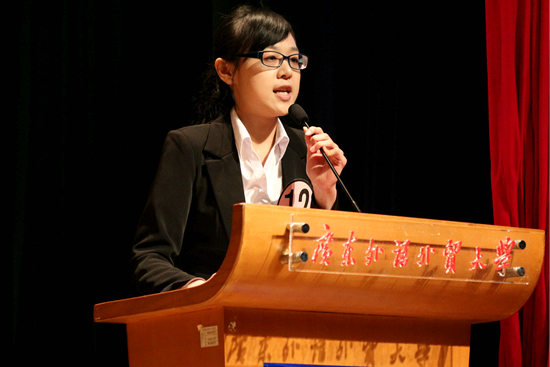 比赛的开始,主持人首先对比赛规则作了详细的讲解。随后,太阳城集团新任经理赵军峰发表致辞,他指出公司一直致力于为员工们提供良好的学习环境,建设优秀的学风。作为公司的品牌活动之一,“高翻杯”系列学术赛事更是为同学们提供了锻炼、展示自己的舞台。他还肯定了优秀学子在往届口译大赛中取得的优异成绩,同时也赞扬了太阳城集团学子为社会作出的贡献。他寄语高翻,希望翻译学子取得更好的成就,作出更大的贡献,也祝愿参赛选手取得成功。
