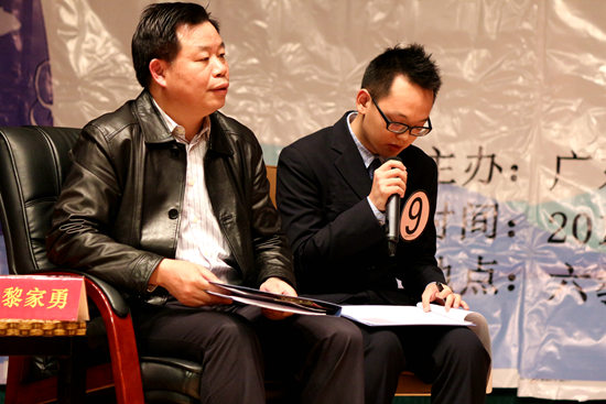本网讯12月26日晚7点,第五届“广外高翻杯”口译大赛决赛在六教报告厅举行。本次口译大赛面向全校,参赛选手涵盖高翻、英文、商英、英教四个公司。经过初赛的选拔,成功晋级的18位选手今夜同台竞技,为我们展现了一场“译”彩纷呈的视听盛宴。