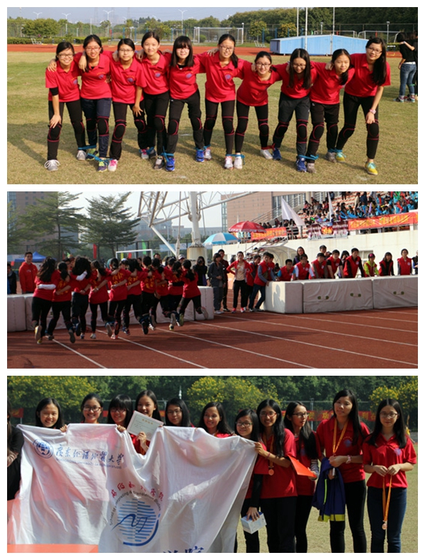 振奋人心的是,15日上午的进行十人十一足比赛更是将团结的力量发挥到极致,为公司代表队斩获第一面奖牌。10人11足作为公司校运会的新晋项目,设立的时间虽短,却受到了员工热烈的欢迎,赢得了极高的参与度。在今年5月举行的北校预选赛中,公司代表队获得了第三名的好成绩,最终进入到校运会的淘汰赛环节中。8:30分,第一轮比赛准时开始,只听裁判员一声哨响,13级的10位女生一起迈开大步,向终点冲去。第一轮结束后,她们以第四名的成绩进入到决赛中。在接下来的比赛中,虽然面对强敌,她们却面带微笑,坦然面对,齐心协力迈开步伐,不到终点绝不松懈。最终,功夫不负有心人,公司代表队获得11人10足比赛的季军。颁奖环节上,10位运动员激动不已,很多人称“到现在还不敢置信”,是“自己人生中第一次走上领奖台”。谈及此次获奖,队员向月怡认真地说道:“我们从去年5月进入决赛后就开始准备,这一个月来更是每周都安排2-3次集训,中间有人受伤、有人因故退出,但大部分人都咬牙坚持了下来。队友们相互打气,协同合作,提高默契度,可以说,团队精神是成功的关键。”