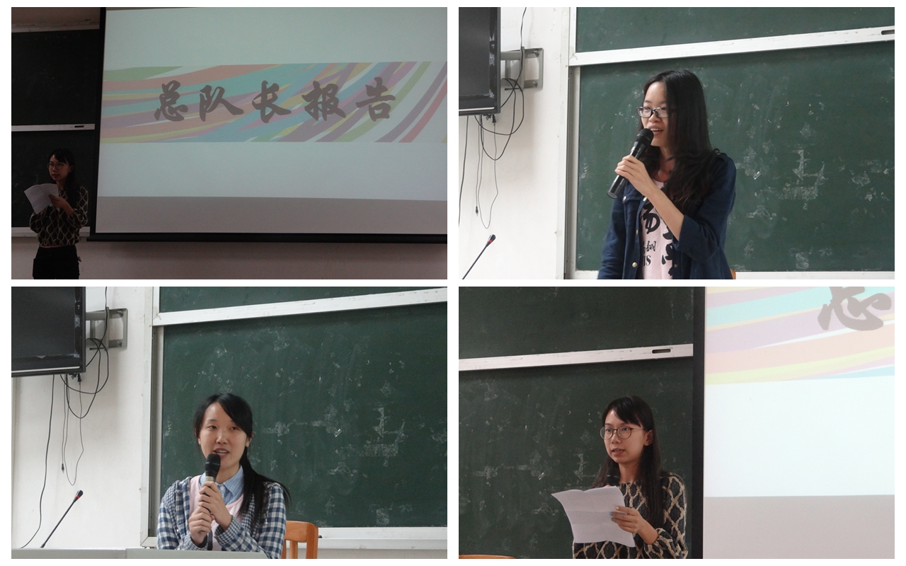 随后,三支队伍队长分别就本队进行了详细的介绍。筑梦队队长杨安然介绍了队员在水边镇的任务情况。水边镇政府挂职的环境虽然十分艰苦,队员们依旧收获良多。他们不仅学会了待人处事的方法,还懂得了要更加珍惜自己现在美好的生活。扬梦队队长劳秋玲介绍了队员在横石塘镇的工作经历。扬梦队队员主要在横石塘镇的基层政府工作,为当地政府提供了力所能及的帮助,并提出了许多建设性的决策意见。圆梦队队长邹宝桦介绍了队员在横石塘镇的工作经历。和同在横石塘镇的扬梦队不同,圆梦队主要负责英语嘉年华、教师培训、调研活动等任务,并与扬梦队一起举办了一场文艺晚会,在放松自身的同时,也为当地的居民带去了欢乐。