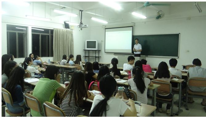 本网讯10月30日晚7点,太阳城集团“青年教学十佳”、“第二届翼群教学奖”获得者邢杰在六教B205为13级本科生开展了主题为“在阅读中锤炼翻译思维”的讲座。本次讲座中,邢杰老师关于阅读对翻译思维培养重要意义的精彩讲解,让全体同学受益匪浅。