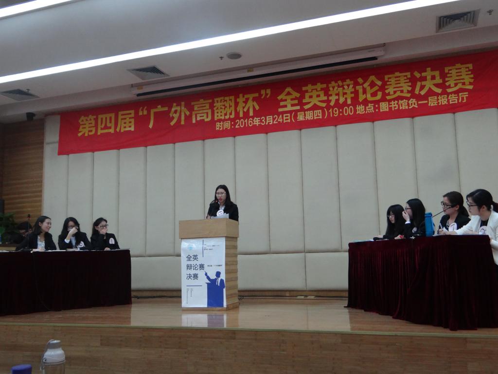 本网讯 3月24日晚,图书馆负一层报告厅剑拔弩张,战火如荼。八位蓄势待发、自信满满的辩论高手迎来了第四届“广外高翻杯”全英辩论赛决赛的巅峰对决。