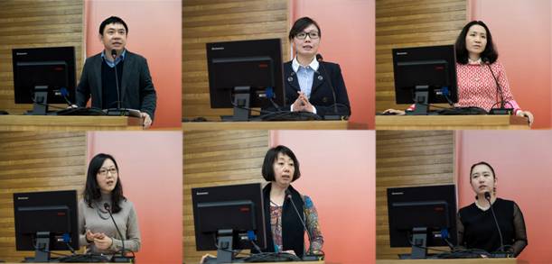 公司国家级教学团队——广外英语口译系列课程团体团队随后作集体发言。詹成详细解释了口译教学“广外模式”的口译理念与原则,口译教学内容与方法对策。“针对不同层次的员工,教学重点也不一样。采用何种方法,取决于课程定位。教学设计环节也应符合教学目标。口译课不是语法课。”他分享了一系列见解,如双语能力,言外知识,口译技能是译员基本能力。他提出教学中应避免的误区,并根据图表解释、总结:“以口译技能为主线,技能分解、技能强化、实践整合是广外培养模式。”了口译教学的“广外模式”——“以理论板块课程进行指导,以技能主线课程进行技能分解、语言主线和专题主线课程进行技能强化,以实践板块课程进行技能整合”。钱唐芳从理论版块介绍了理论的重要性,提出译员知识结构公式。王丹从技能主线出发说明综合能力的分成,信息处理转换表达与训练的细则。贾兰兰从专题主线角度分类商务、外交、法庭口译等。张丽华分析了口译实地观摩、模拟口译等实践版块的重要性。王巍巍则强调了通过能力评估、表格学习总结笔记来了解教学目标达成情况与改进。、王丹、贾兰兰、詹成、张丽华分别介绍了理论板块、技能主线、专题主线、语言主线和实践板块的课程设置和教学操作。王巍巍则介绍了如何通过口译评估来评量员工的学习效果和能力发展。