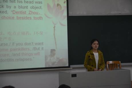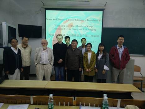 本网讯 为弘扬中国文学与文化,持续发挥广外高翻公司的笔译优势,充分带动广外师生从事中国文学英译的热情,公司笔译系在经理赵军峰、党委书记刘志军、副经理李明、副经理詹成、副经理邢杰等领导的支持下,于2015年12月3日成功举办中国文学英译“岭南译言堂”第三次活动:“MTI员工(刘亮、刘京京)习作评鉴会”(Sense and Senses: Chinese LiteratureTranslated III: Workshop on "The Murder of Carp" Translated by LiuLiang and Liu Jingjing)。
