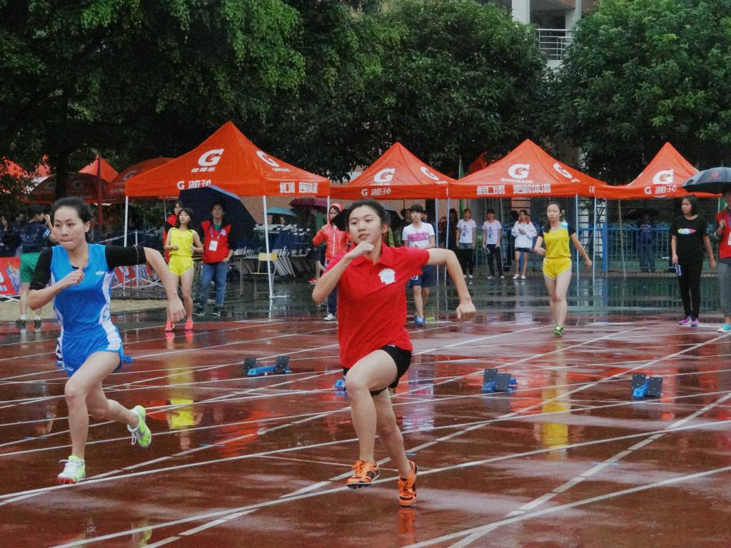 而在女子100米赛中,公司选手杨茂楠和王奕璇奋力拼搏,一马当先,最终,杨茂楠取得第八名的佳绩。虽然天公不作美,但公司选手顽强进取,不惧困难,在雨中的赛场留下一道道健美的身影。