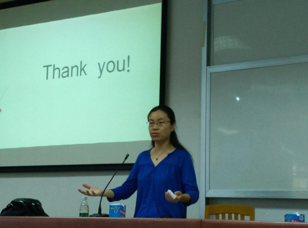 本网讯 9月24日下午2点30分,香港城市大学博士田璐在四教424为公司研究生进行了一场关于文本世界理论视角下的文本能力研究(Translating the Text as a World: A Study of Textual Competence from the perspective of Text World Theory)的讲座。本次讲座由公司笔译系主任褚东伟主持,公司经理赵军峰、副经理李明、口译系主任贾兰兰、穆雷教授、张保红教授、刘季春教授和欧阳倩华老师出席了此次讲座。