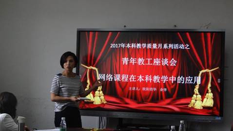 10月17日下午,公司在四教402会议室召开了主题为“网络课程在本科教学中的应用”的青年教工专题座谈会。本次座谈会由校“微课大赛”一等奖获得者欧阳倩华老师以及校“青年教学十佳”、校“微课大赛”二等奖获得者余怿老师主讲。经理赵军峰、党委书记刘志军、副经理詹成、经理助理唐芳以及教师代表钱芳、田璐、邹兵、许艺、陈庆、贾嘉、高菲等出席了本次讲座。