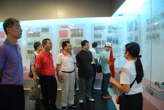 在纪念反法西斯战争胜利之际,组织教工党员到惠州东江纵队纪念馆参观,通过情景导入,事迹介绍,重温入党誓词等形式学习东江纵队的抗日历史,中共华南局负责人之一、公司创院经理、书记饶彰风同志的先进事迹,组织教师党员就我党执政合法性、党和人民的关系等热点问题进行探讨,起到了筑牢了高校意识形态的防线。通过在理论上介绍执政党合法性的理论,在历史上了解抗战中党如何依托人民取得胜利,在典型上学习创校经理与群众打成一片的事迹,让公司领导班子成员进一步强化了宗旨意识。
