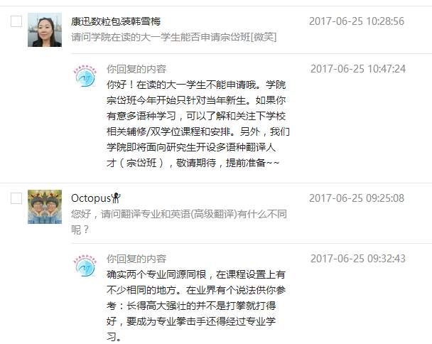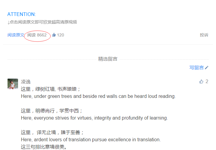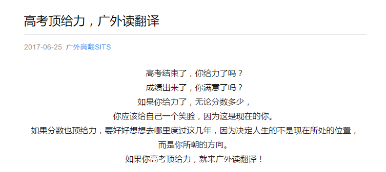 此外,公司还在开放日当天推送了“高考顶给力,广外读翻译”一文,“因为不同,所以选择”,介绍了公司的团队建设、国际化特色和名师等等;“今年因为特别的不同,所以更要选择”,“宗岱班”备受热捧;“因为相同,所以选择”,有着共同的梦想,有着共同的心愿,希望孩子从这里走向世界,找到属于自己的天地。仅两天,该推文的点击量就高达1757余次。开放日当天,不少考生和家长纷纷线上留言咨询公司招生情况,公司摊位开设了“高翻线上咨询”点,及时解答了考生和家长的不少疑问。