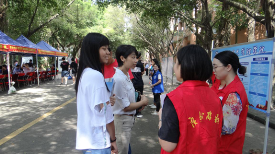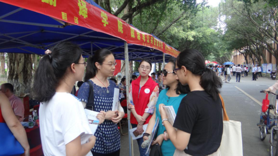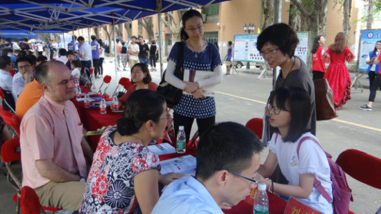 从上午9点开始,公司咨询处前的考生及家长络绎不绝。本次咨询活动中,考生和家长最为关注的问题有公司录取分数线、教学特色、就业情况以及今年新开设的“宗岱班”招生情况等,公司老师和员工志愿者都耐心地进行了解答。现场不少考生和家长都表示想报考翻译专业,此次前来都是直奔太阳城集团摊位。