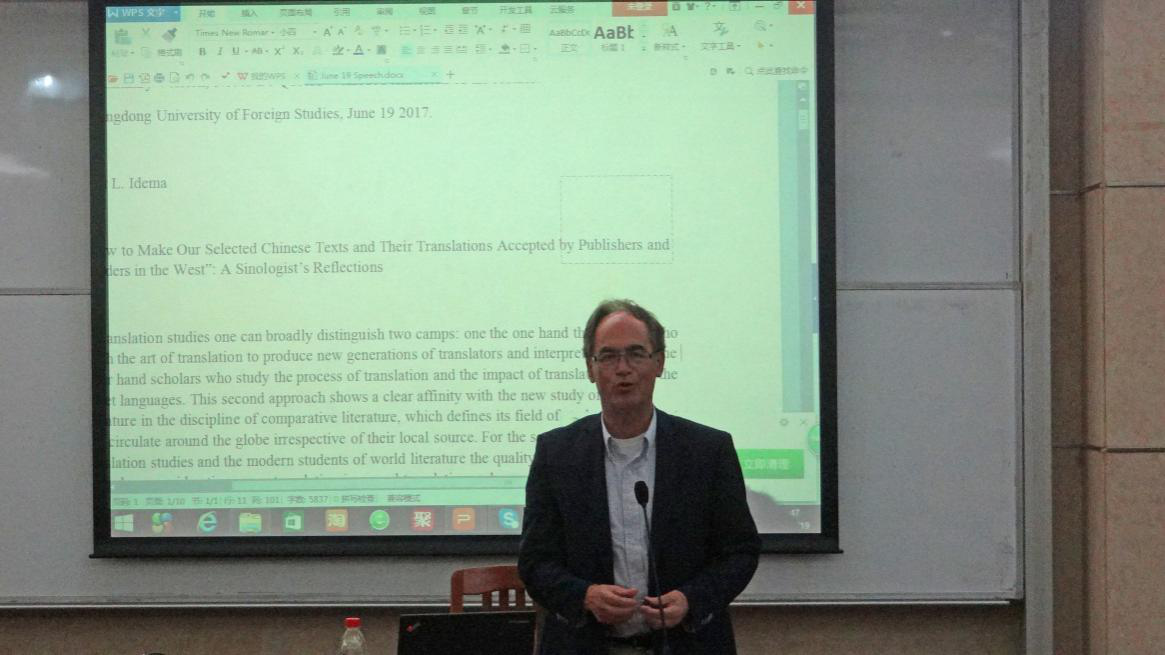 伊维德教授长期以来从事中国文学的研究工作,他结合自己翻译中国文学的丰富经验,以“汉学家的反思: 如何使我们所选的中文文本及其译文被西方的出版商和读者所接受”为主题深入探讨文学翻译。他主要从译者对源语言的语言文化的精通、对目标语言的语言文化的精通和对所翻译作品的热爱三个方面入手,探讨了西方商业出版社在出版中国文学作品翻译时有限销售的原因。他分析欧洲和美国出版行业的不同之处以及出版中国文学作品的翻译现状,并结合自己多年翻译中国文学的实践经验,给出了翻译文学作品时不要尝试提升原文,翻译诗歌时不要试图制造押韵的翻译等一些建议。