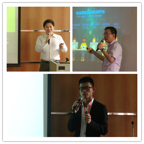 工作坊还举办了凸显“集成创新”思路与理念智能技术平台实操展示与研讨,应邀与会的三家大数据科技企业,围绕外语团队建设中高校普遍关心的“数字化课程资源建设与在线课程建设”话题,进行了应用展示、互动答疑和合作洽谈等。来自北京语智云帆科技有限公司的魏勇鹏先生,以如何激发与增强员工参与度为切入点,介绍了其公司的最新研究项目——“试译宝”智能翻译批改与教学系统。该系统的智能程度高,人机互动深度融合,展示了智能技术的极大魅力。紧接着,来自上海佑译信息科技有限公司的史振宇先生,从大数据语料库的建设与应用的角度,谈及了其公司超大规模、百亿级、多语垂直领域语料库的研究成果,引起在座很多高校负责人的关注。最后,上海一者信息科技有限公司的张井先生抓住“校企合作”的主题,展示了“共建共享特色语料库”解决方案,很快吸引了很多粉丝。 各个大数据智能化项目的展示让人惊叹于教育技术迅猛发展,也让在场师生对校企合作,共创翻译教育新未来的前途充满信心。