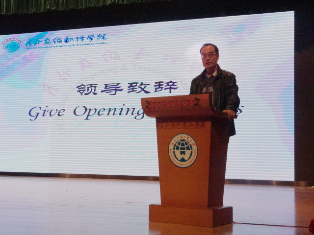 赵军峰首先致辞,他指出,口译工作的高挑战性要求口译员具备多种能力。同时他充分肯定了往届口译大赛中参赛者优秀的技能和变现,并表达了对本届比赛选手的期望和祝福。